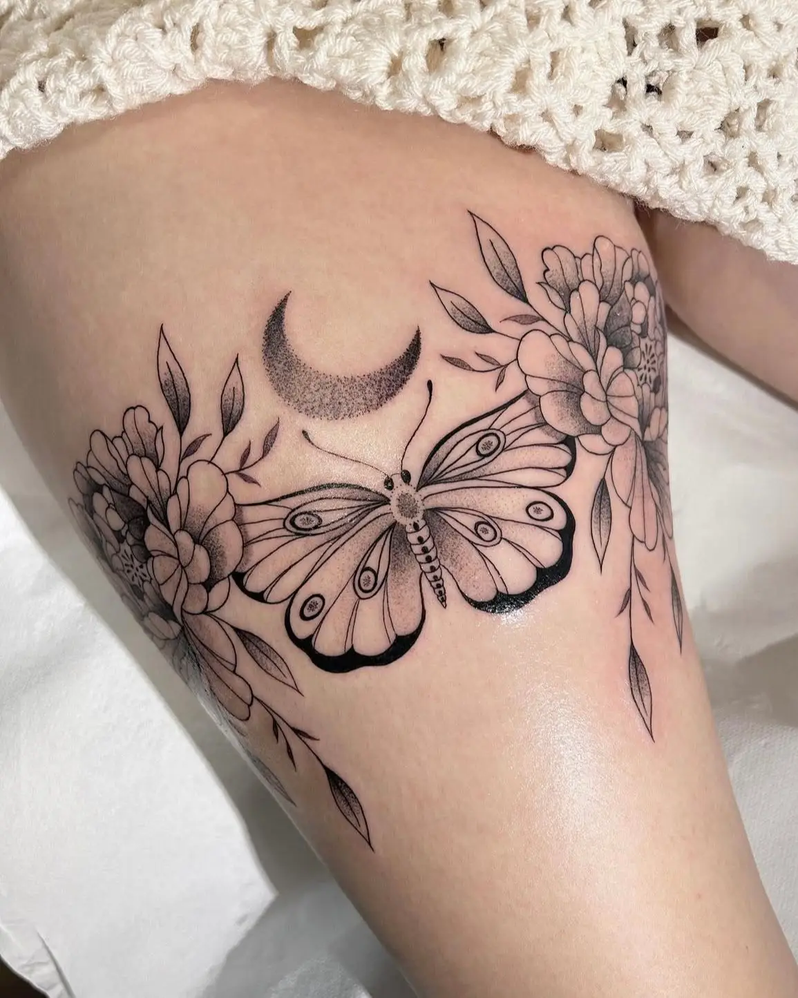 Black and grey, Dotwork, Fine line, Floral, Ornemental
